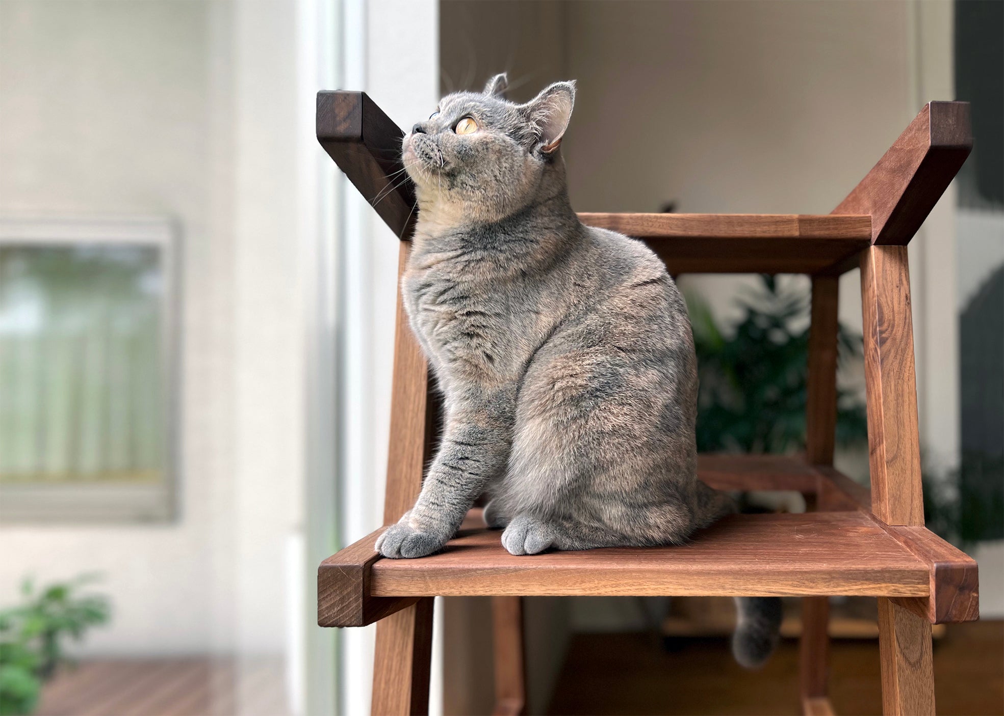ネコがのぼる際に圧迫感が出ないように、ステップの高さや幅、緩やかな曲線を用いるなど、細心の注意を払いデザインしました