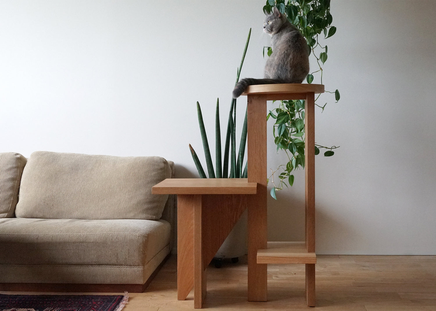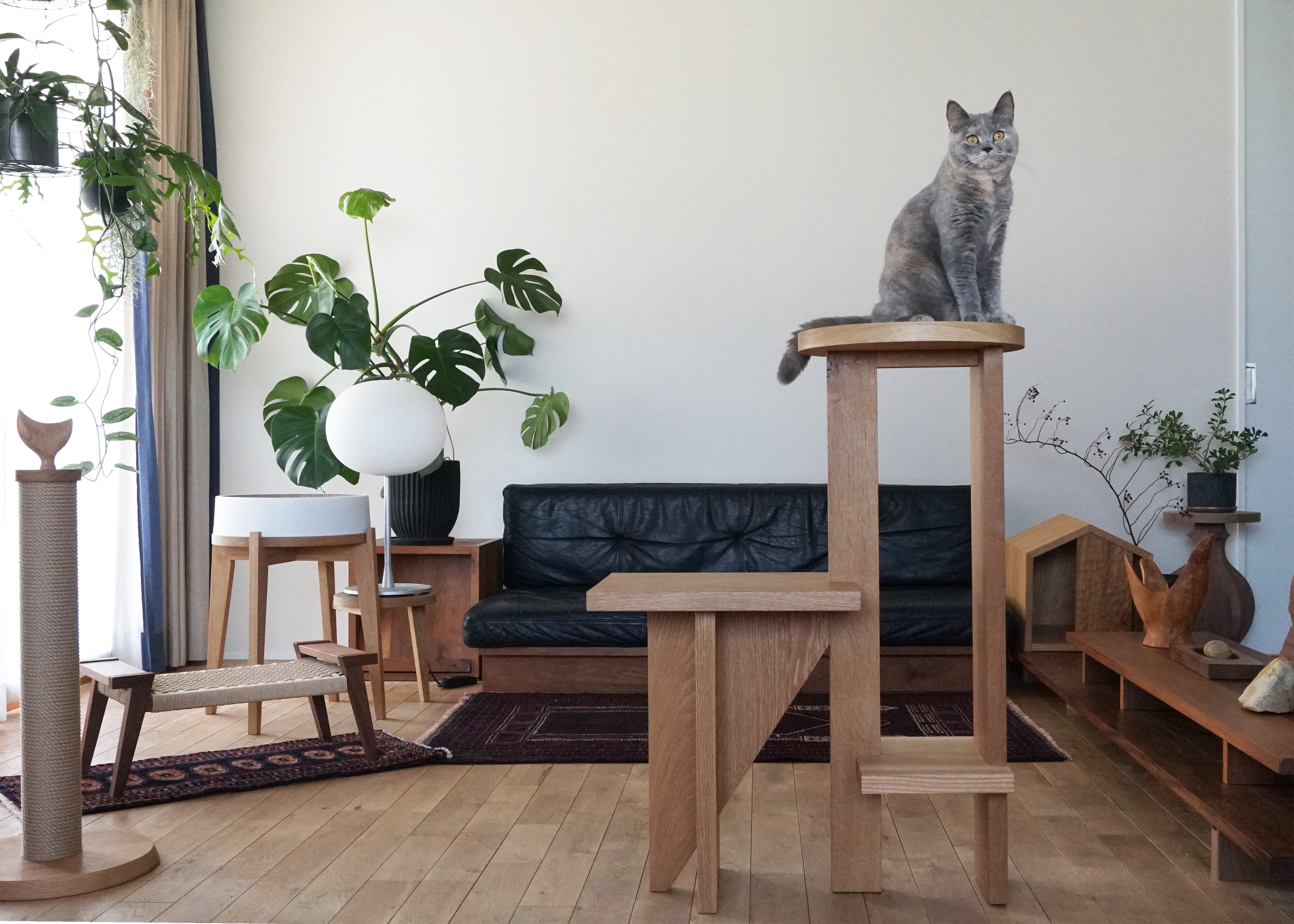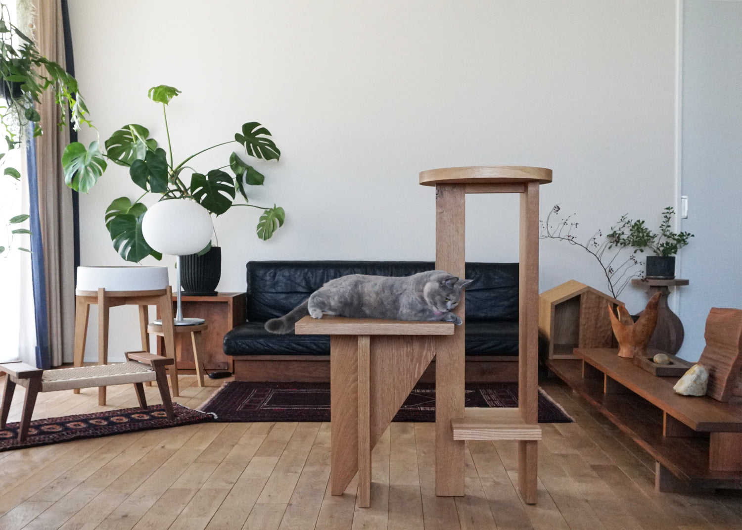 たとえば部屋の中心に置いても違和感なくつかえ、愛猫が乗っていてもいなくても様になるキャットステップをつくりました