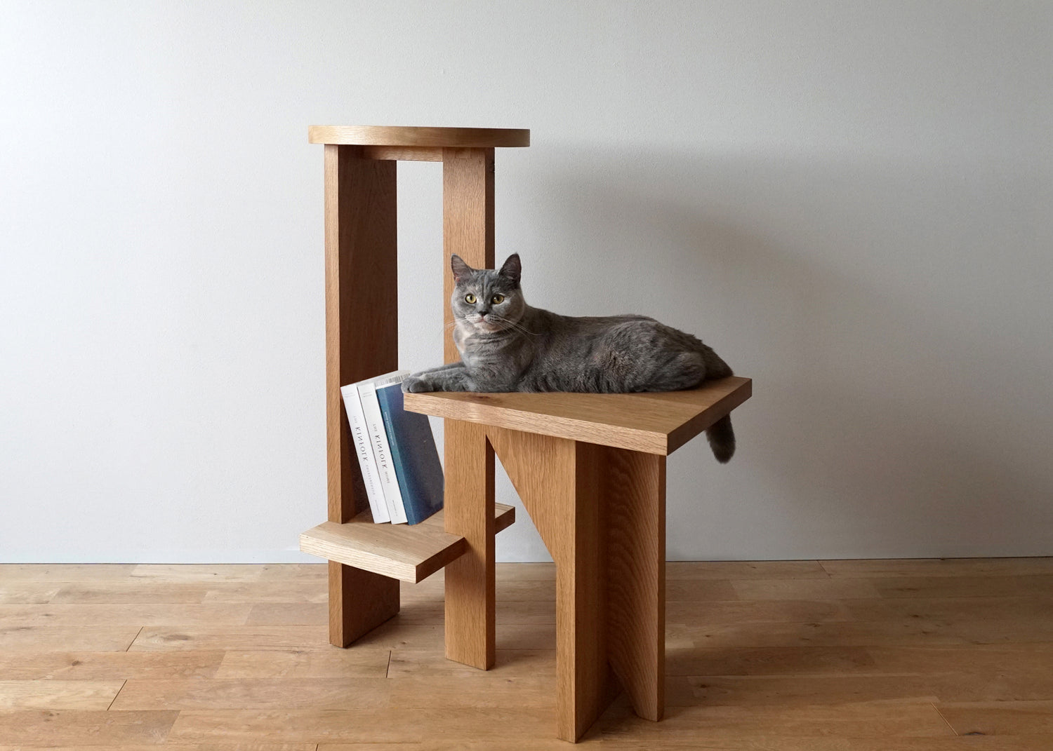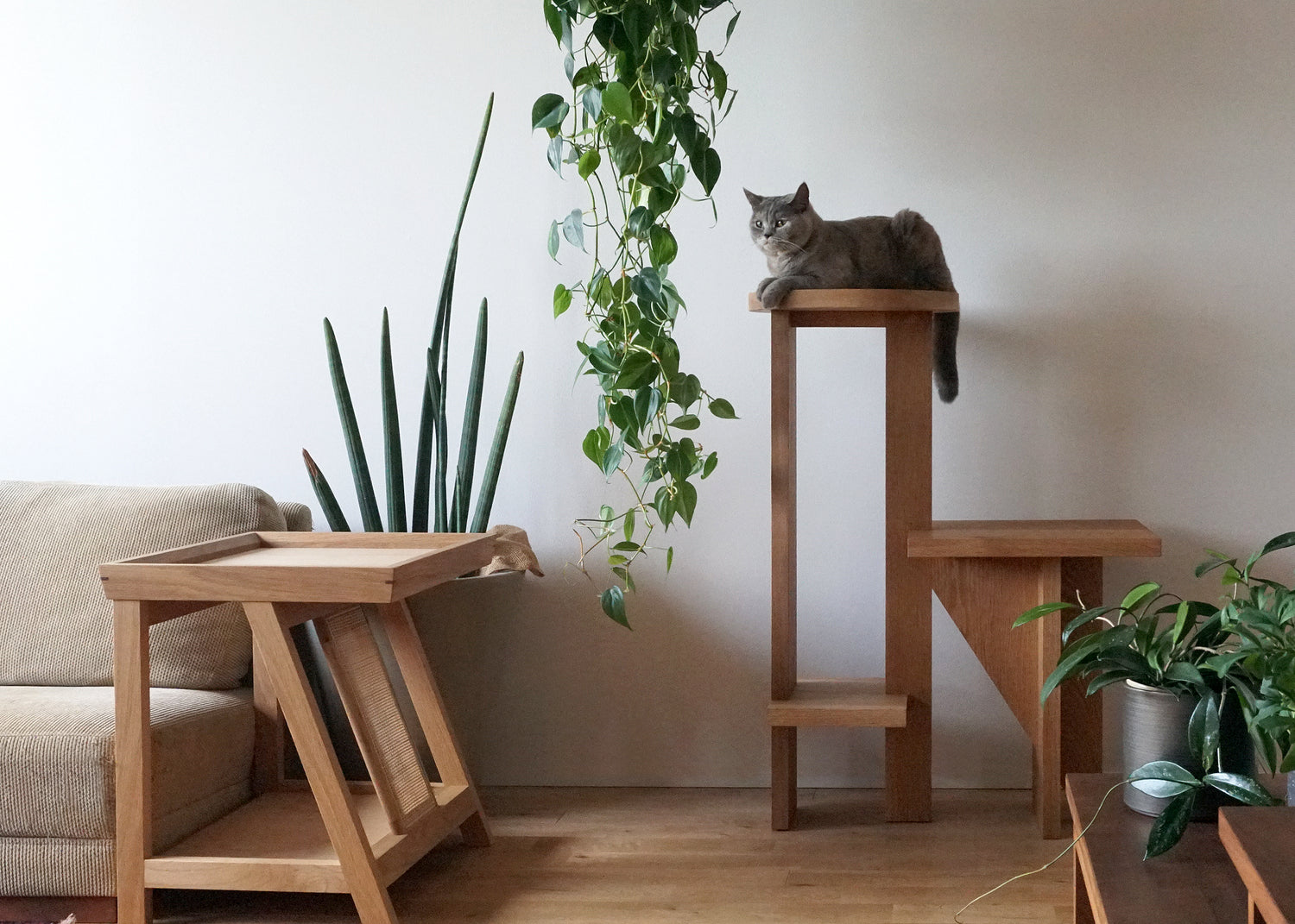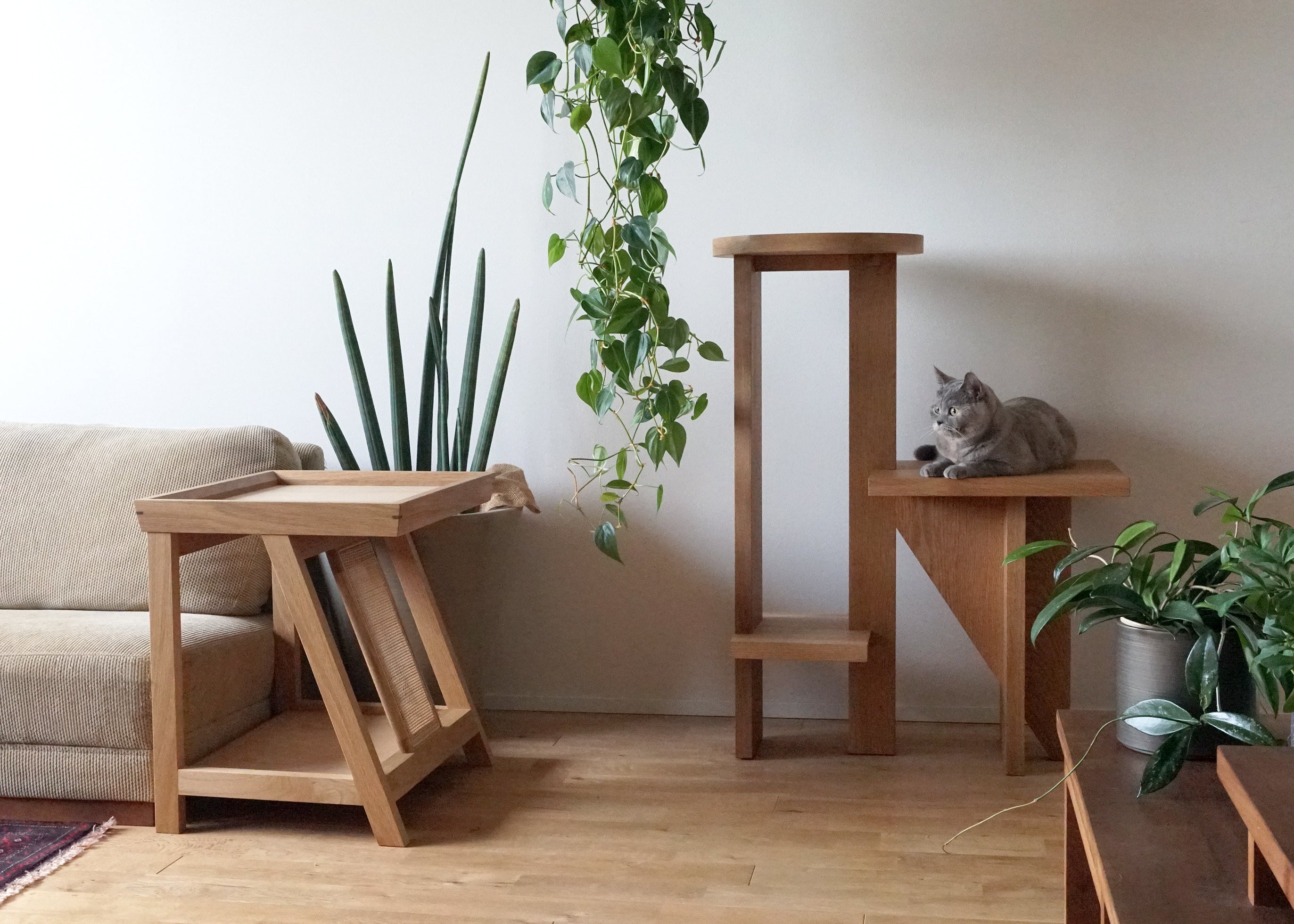 たとえば部屋の中心に置いても違和感なくつかえ、愛猫が乗っていてもいなくても様になるキャットステップをつくりました