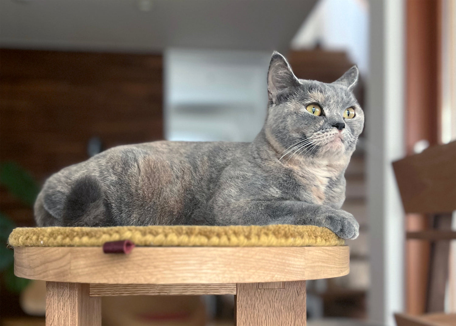部屋の中心や壁面、どこに設置しても、何も飾っていなくても空間に自然と溶け込む雰囲気ある佇まいですが、愛猫が上ってくれることでさらに魅力を増してくれます