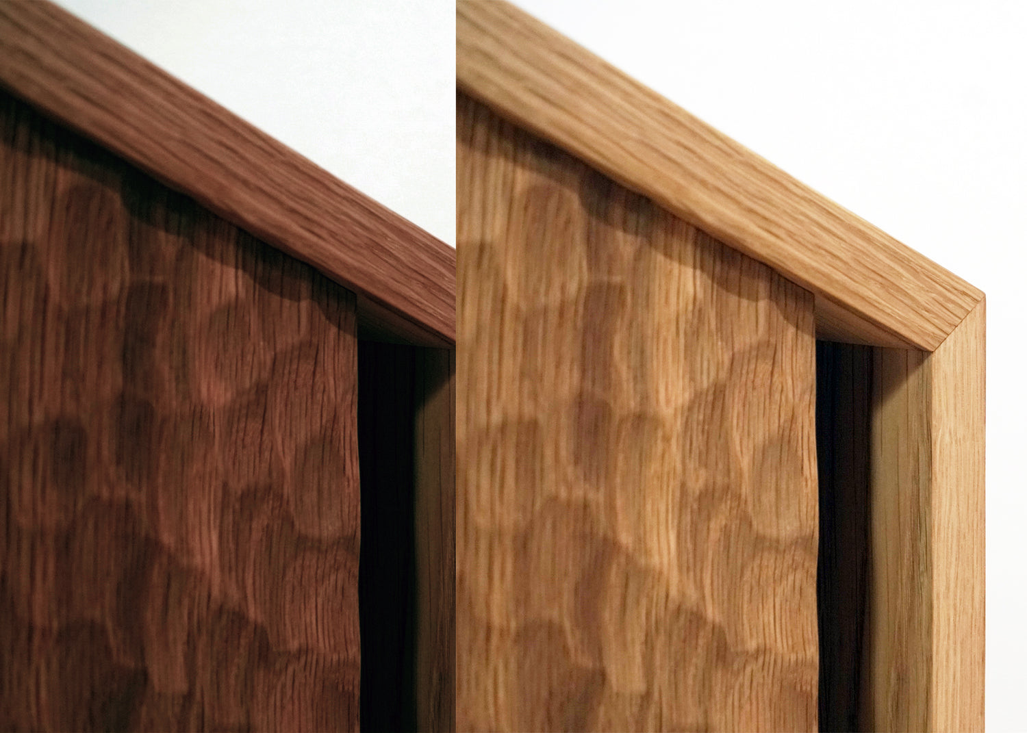 正面の模様は古くから日本建築に用いられてきた名栗(なぐり)加工